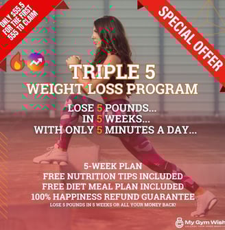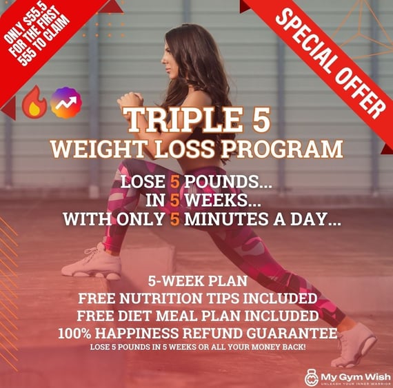 The Triple 5 Weight Loss Program Challenge is a LIVE community-based challenge that helps you lose 5 pounds in 5 weeks with just 5 minutes of daily exercise from the comfort of your own home.